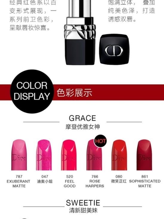 3、新品系列:Dior不断推陈出新,价格根据系列和色号的不同而有所差异,让你尝试到最新最热的色号。