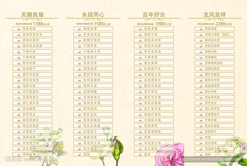 最新婚宴菜单,美味佳肴
